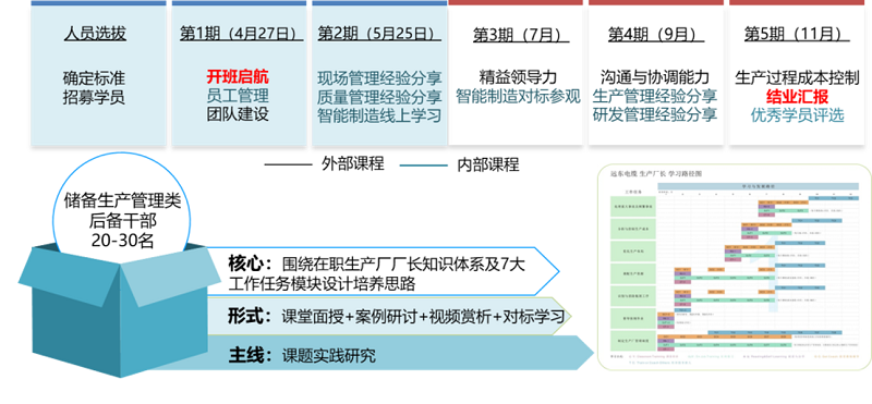 遠東于行業(yè)內(nèi)率先引入精益生產(chǎn)”、智能制造”理念,遠東大學(xué)生產(chǎn)學(xué)院針對不同條線、不同崗位導(dǎo)入精益生產(chǎn)各個模塊的學(xué)習(xí)內(nèi)容,舉辦有精益廠長特訓(xùn)營、精益班組長特訓(xùn)營、精益標桿游學(xué)項目,同時開辦了匠師項目-面向中高層管理人員、匠研項目-面向研發(fā)人員、匠英項目-面向基層管理人員、匠工項目-面向一線操作類人員。